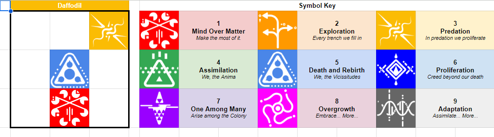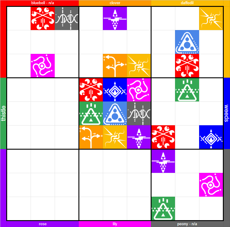 [ On this section of the wall, a 3 x 3 grid has your flock's name on it: