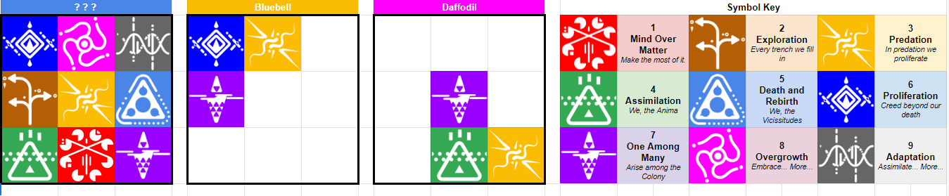 [ On this section of the wall, a 3 x 3 grid has your flock's name on it: